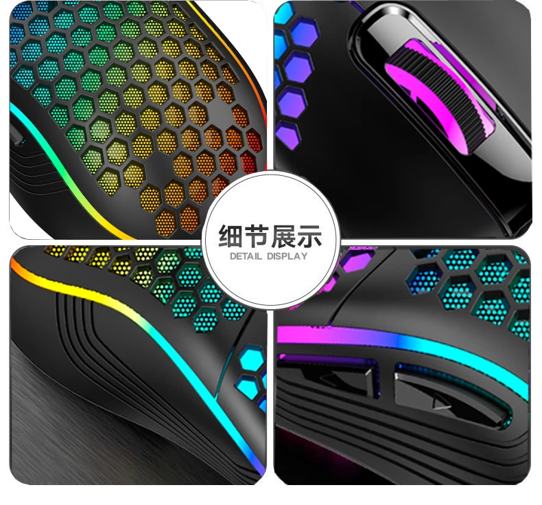 يعتمد ماوس الألعاب على غلاف قرص العسل، الذي لا يتميز بمظهر رقيق فحسب، بل يجعلك تشعر بالراحة وسهولة التشغيل مع وزن خفيف 78 جيجا، ولن تشعر بالتعب عند حمل الماوس لفترة طويلة.